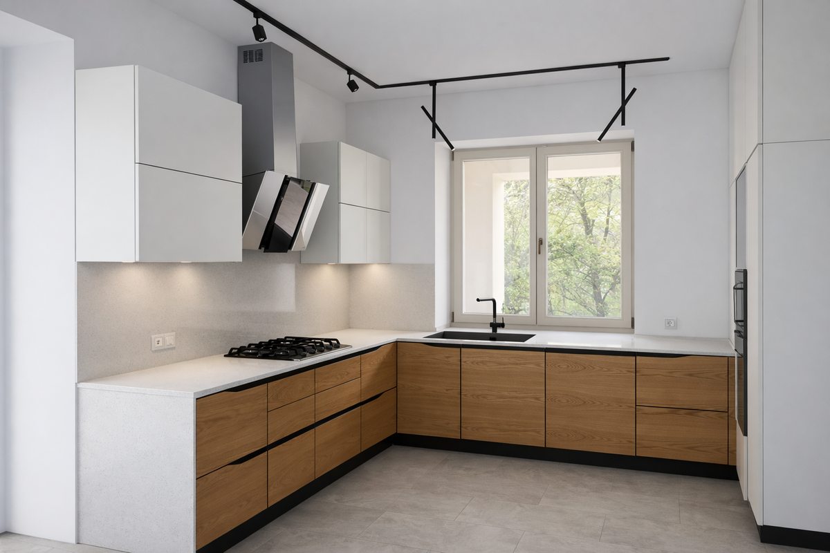 Blum, Hafele, and quality finishes. Clean look, long-term use